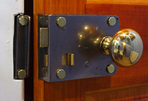 Уязвимите части на тези врати са бравите със стърчащи навън патронници, касата на вратата в мястото, което държи езика на бравата и пантите от завиващ се тип.